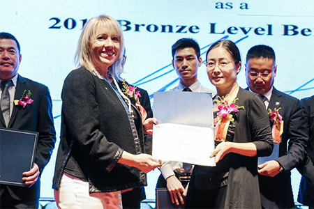 7月12日,IFSCC在中國的首屆“Benefactor Day”化妝品技術交流盛會正式啟動。棟方股份應邀出席會議,榮耀成為中國內地首批獲得IFSCC正式授牌的企業之一,由IFSCC主席、香奈兒副總裁Amy Wyatt女士現場頒發證書。