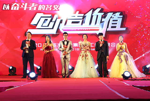 棟方股份集團倪總、邱副總分別登臺作工作匯報,帶領大家回顧了2017年公司的蛻變、發(fā)展之路,并向全體家人送上了新春祝福。