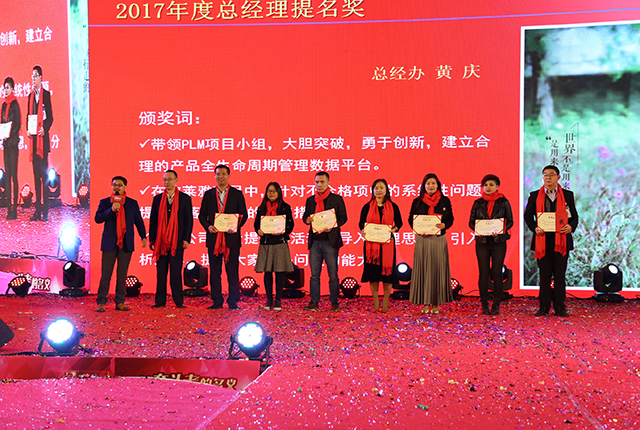 正如唐董所言,2017是不平凡的一年!過去的一年,公司除成功達成重大項目之外,還涌現了大批優(yōu)秀的團隊、個人。為感謝他們在各自崗位上付諸的努力,公司依次頒發(fā)了優(yōu)秀項目獎、優(yōu)秀團隊獎、明日之星獎、棟方風范獎、總經理提名獎、十年忠誠獎等十三個獎項,共計4大項目、5個團隊與137名個人在此次年會上受到表彰。