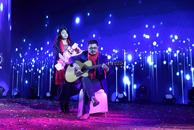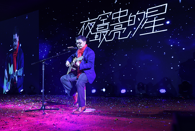 受現場氣氛感染,唐董也攜吉他登臺,即興彈唱了《夜空中最亮的星》、《當你老了》,鼓舞棟方股份集團的奮斗者們,在新的一年勇敢前行。
