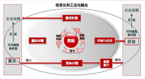 兩化融合,即工業化與信息化的深度融合。是一項國家戰略決策,通過在企業內部推行并建立一套管理體系,形成企業長期推動兩化融合的內在機制;可輔助企業理清業務模式和業務流程,消除內部管理阻力;以制度創新保障技術創新、商業模式創新,形成良性循環。
