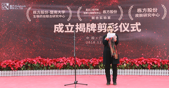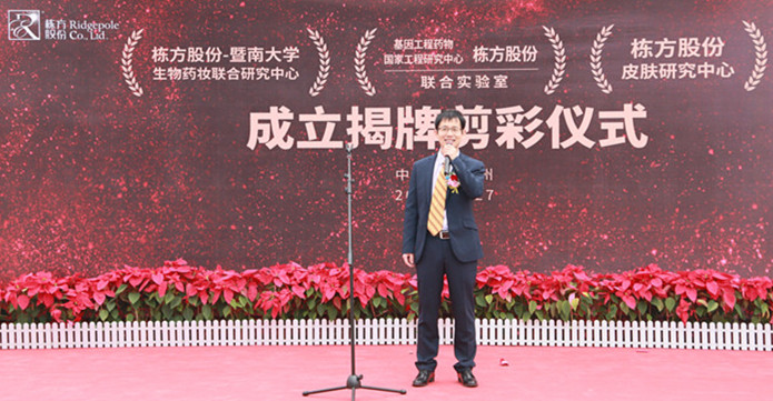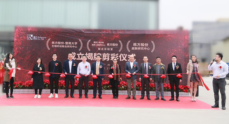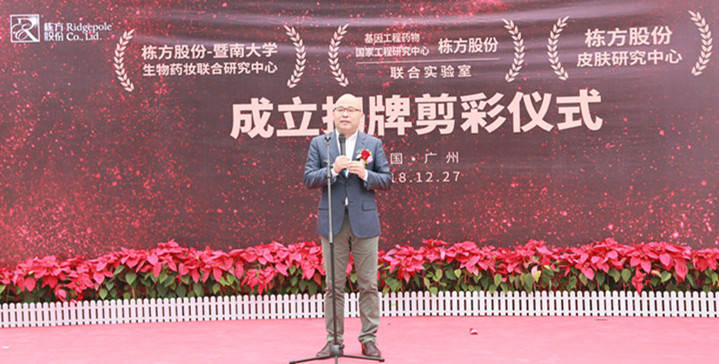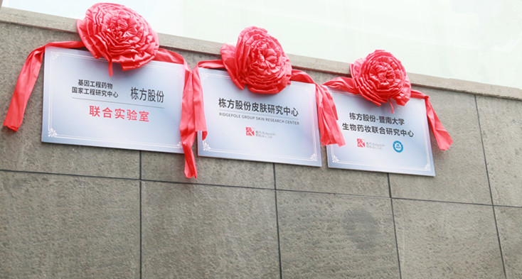2018年12月27日上午,棟方股份技術(shù)合作揭牌剪彩活動(dòng)在公司技術(shù)研究大樓一樓廣場隆重舉行,正式成立了“棟方股份--暨南大學(xué)生物藥妝聯(lián)合研究中心”、“棟方股份--基因工程藥物國家工程研究中心聯(lián)合實(shí)驗(yàn)室”、“棟方股份皮膚研究中心”三大研究中心。此次生物藥妝技術(shù)重磅合作,在棟方技術(shù)創(chuàng)新發(fā)展史上具有重大里程碑意義。
