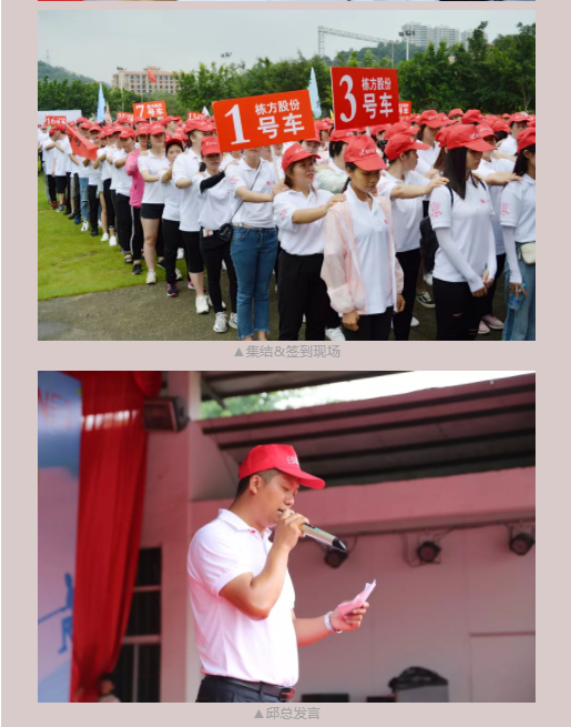 抵達(dá)目的地后,看到的是佇立在綠油油草地上的簽到墻,還有等候多時的基地教導(dǎo)員;在教導(dǎo)員的帶領(lǐng)下整齊列隊簽到,進(jìn)入訓(xùn)練場地,邱總上臺發(fā)言。