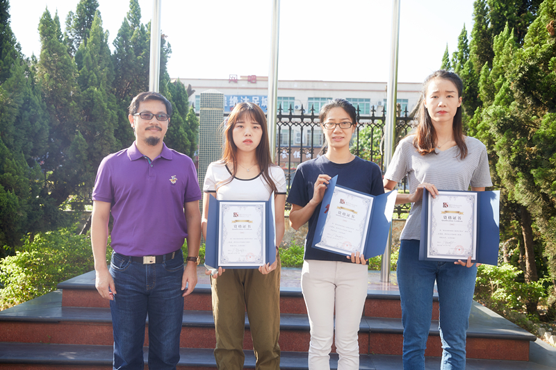 現場評審內容分為四大部分:專業知識、市場趨勢、配方制作、樣品制作;經過層層考核與評選,最終技術中心許恩恩、江君如、單莉成功由助理工程師晉級初級工程師,唐董親自為他們頒發證書。