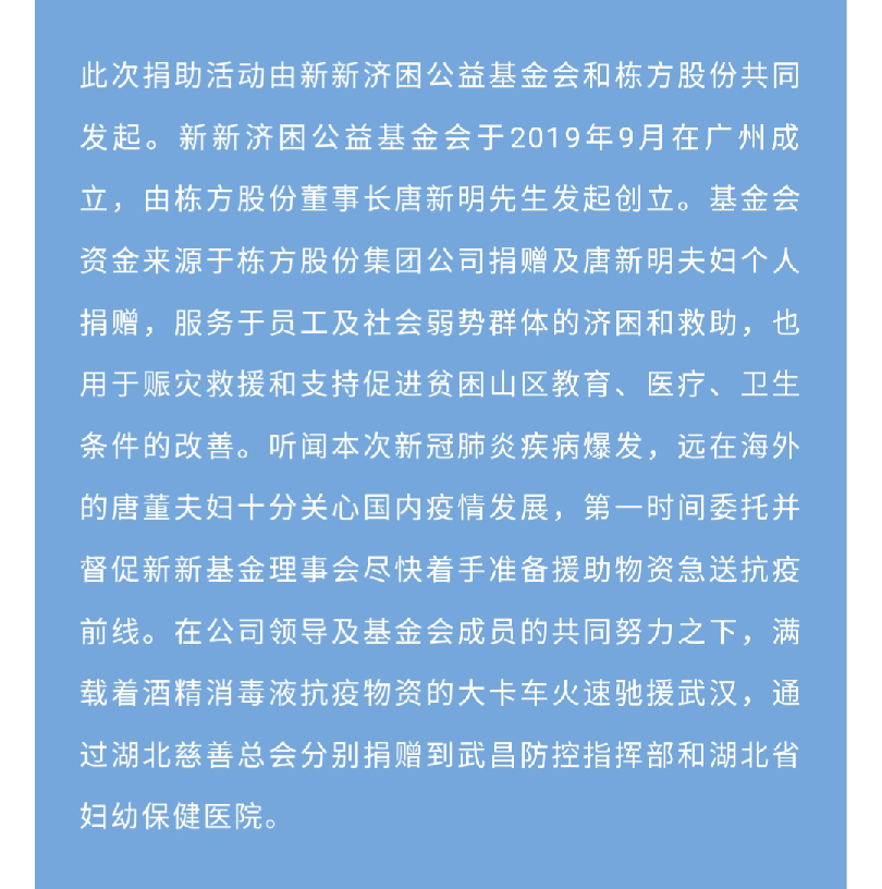 我們心在一起丨棟方股份聯合新新公益基金會援鄂抗疫紀實