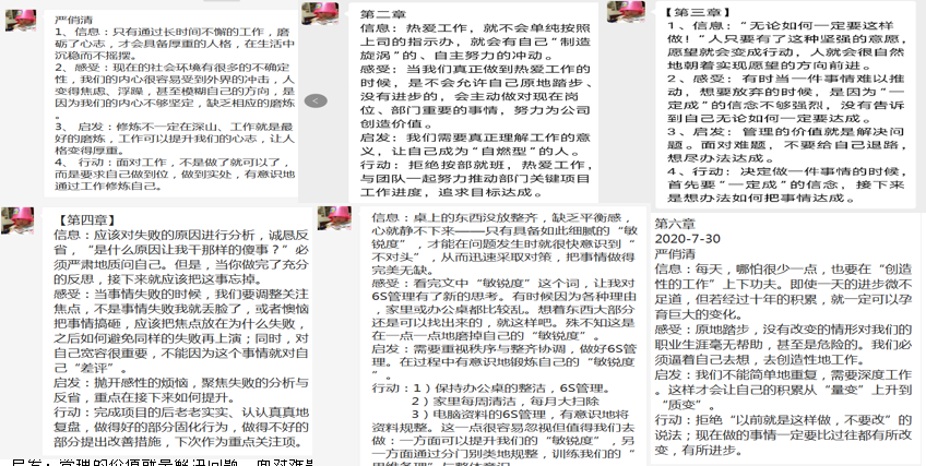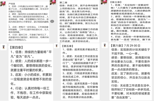 本次共讀,書友們全程100%參與打卡,以“閱、知、行”為核心導向,采用“信息+感受+啟發+行動”的方式總結自己的收獲和感悟,切切實實讓書友們做到學有所獲,學以致用。