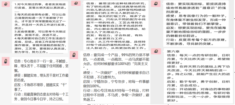 “書友分享共讀收獲&工作組感言”、“頒發‘優秀共讀者’”、“思維導圖分享”三個互動板塊組成了精彩生動的結營儀式。本期意味深長的讀書會,留給書友們的是人生及工作上用之不竭的思考和收獲,“匠心”、“精進”的種子已然種下,定會在工作上、生活上有所進步。