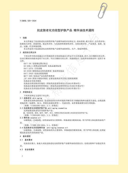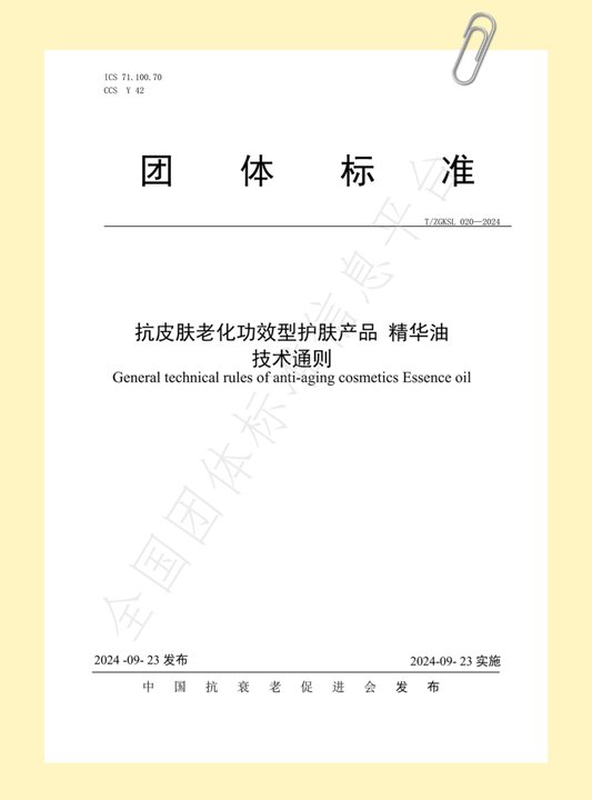 近日,由中國抗衰老促進會歸口管理、棟方股份參與起草的國內首部《抗皮膚老化功效型護膚產品 精華油技術通則》團體標準(T/ZGKSL 020—2024)正式發布。
