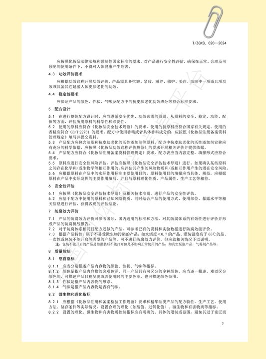 該標準從產品的定義、分類、技術要求、試驗方法、檢驗規則以及標志、包裝、運輸和貯存等方面進行了全面規定。其中,技術要求部分涵蓋了產品的配方設計、原料選擇、生產工藝、產品質量等多個方面,確保產品具有明確的抗皮膚老化功效和安全性。