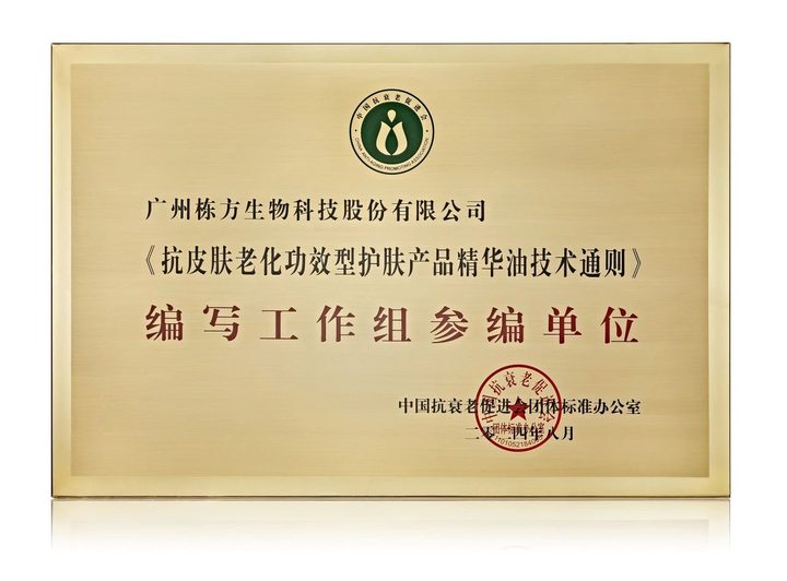 為助力抗皮膚老化護膚產品行業更好的發展,由上海林清軒生物科技有限公司牽頭組織,廣州棟方生物科技股份有限公司、上海交通大學等高校院所與企業共同參與制定《抗皮膚老化功效型護膚產品精華油技術通則》團體標準。